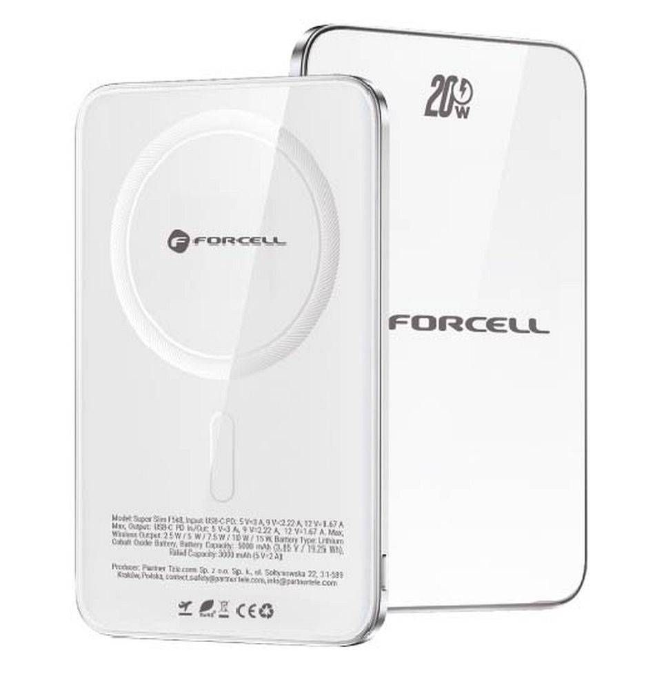 Akupank Forcell F-Energy SuperSlim F5K8 QC4.0 PD3.0 15W 5000 mAh (valge)