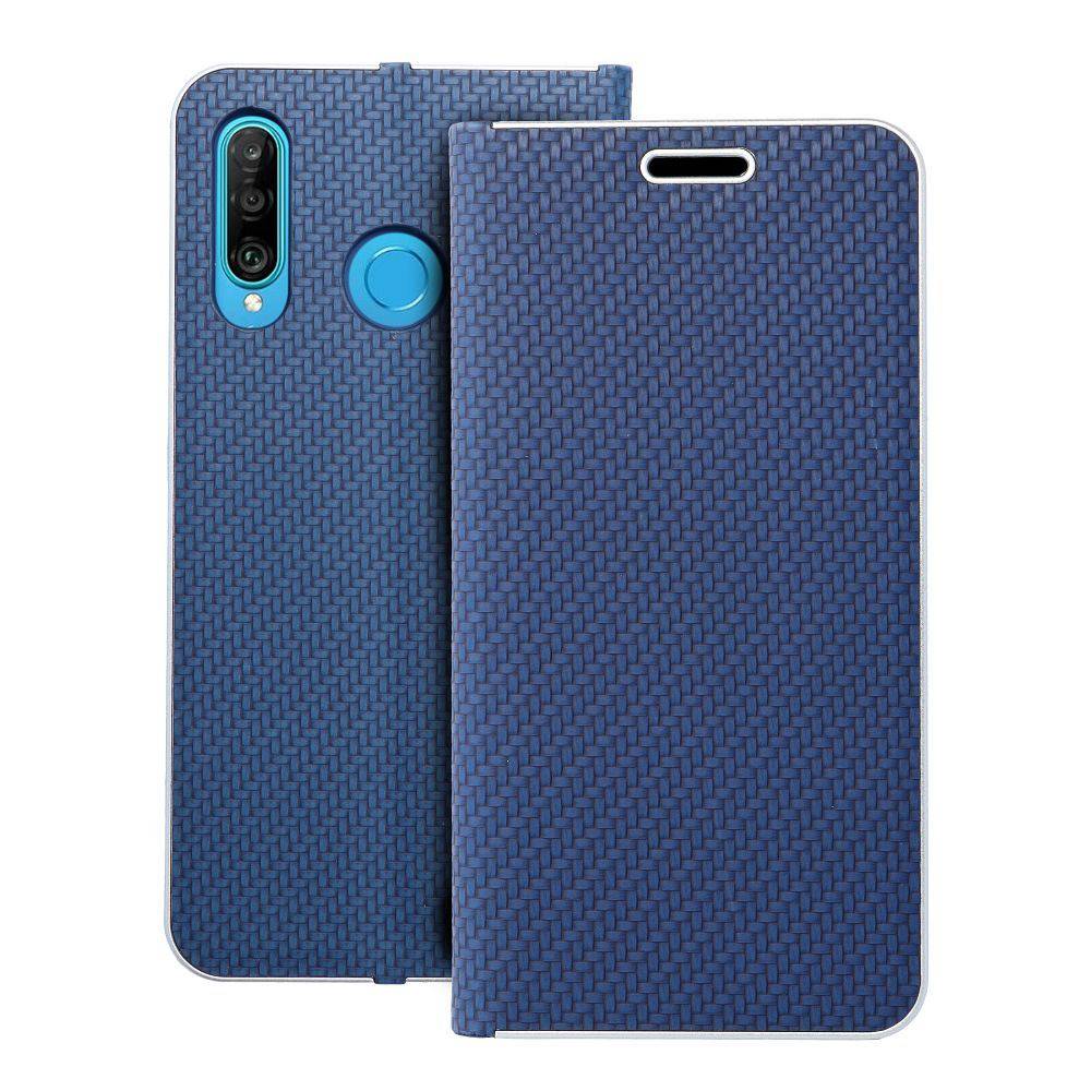 Ümbris LUNA Book Carbon Huawei P30 Lite (sinine) on praktiline valik, kui vajad töökindlat lisatarvikut.